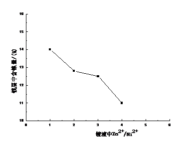 图3-1镀液中Zn2+/Ni2+质量比对镀层中含镍量的影响